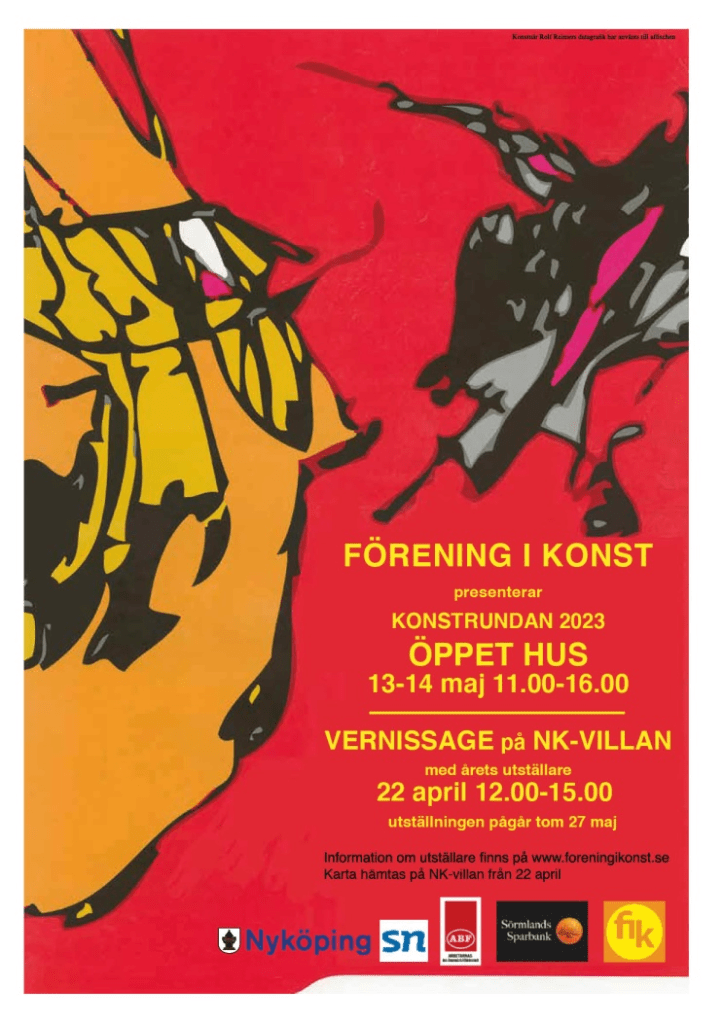 Idag är det deadline för att anmäla sig till Konstrundan / Öppet hus som arrangeras av FIK – Förening i konst den 13-14 maj. Inför detta så ska deltagarna ha blivit medlemmar i föreningen, anmält och betalat avgiften för deltagandet, skickat in uppgifter/foton om sig/sin grupp som ska läggas in på hemsidan samt skickat in bild till den katalog som ska ordnas inför vernissaget den 22 april på NK-villan i Nyköping.