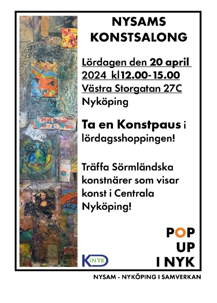 * gått med i NYSAM (NyköpingiSamverkan) vilket ger mig möjlighet till ytterligare ett ”skyltfönster” att visa upp och även sälja mina produkter. Närmast kommer en ”Pop-Up”-utställning i en tom butikslokal i centrala Nyköping lördagen den 20/4 mellan 12.00-15.00. Välkomna!